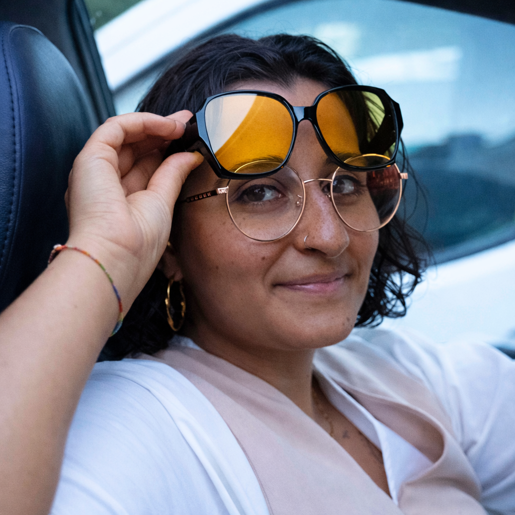 Grâce à leur design enveloppant, les OptiNight® se portent directement par-dessus vos lunettes de vue, sans glisser ni comprimer.