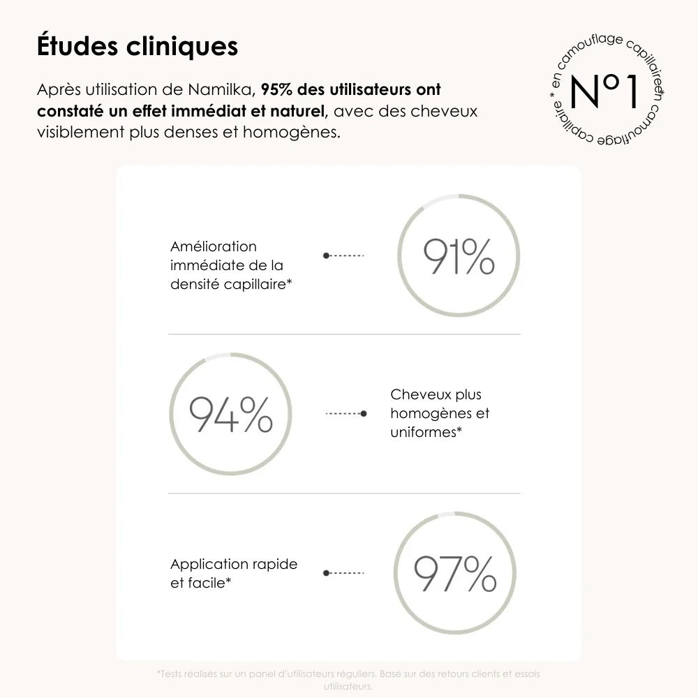 Masquez instantanément les zones clairsemées pour un effet cheveux plus denses et naturels – Résiste à la pluie, à la sueur et aux frottements.