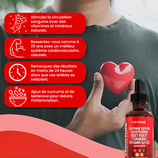 Favorise un meilleur flux sanguin en nettoyant les artères et en éliminant les plaques, pour une circulation optimale et un cœur en pleine santé.