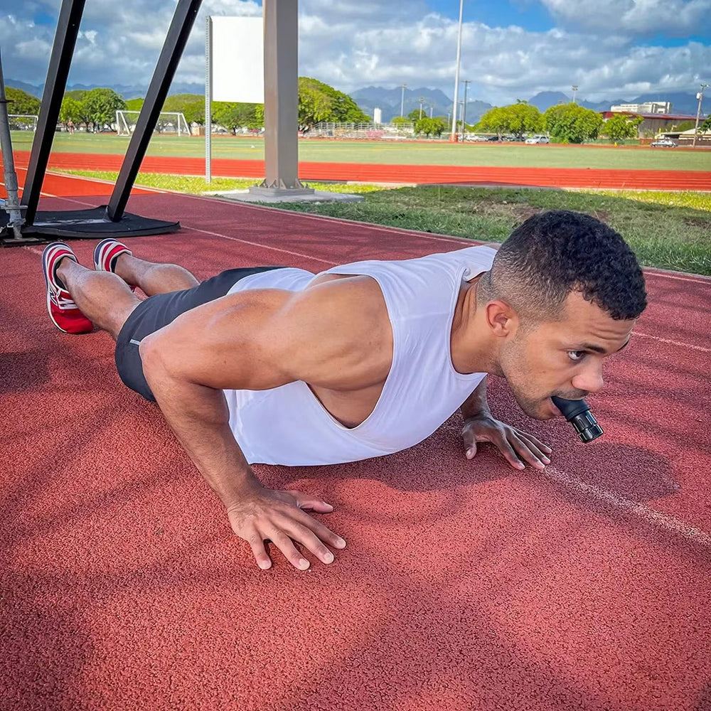 Grùce à ses niveaux de résistance réglables, Entraßneur de Respiration Portable renforce vos muscles respiratoires pour des efforts plus longs, sans essoufflement.
