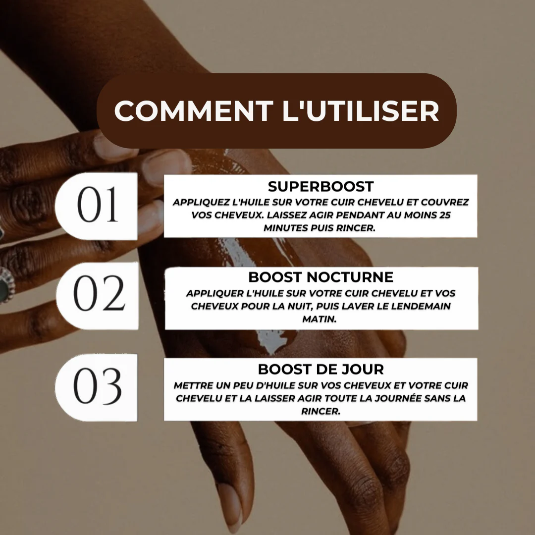 Mes cheveux sont plus forts, plus doux, et j’ai déjà gagné en longueur. J’adore la texture de l’huile et son effet sur mon cuir chevelu. Le produit est incroyable. Je recommande à toutes ! 🌟 - Ange