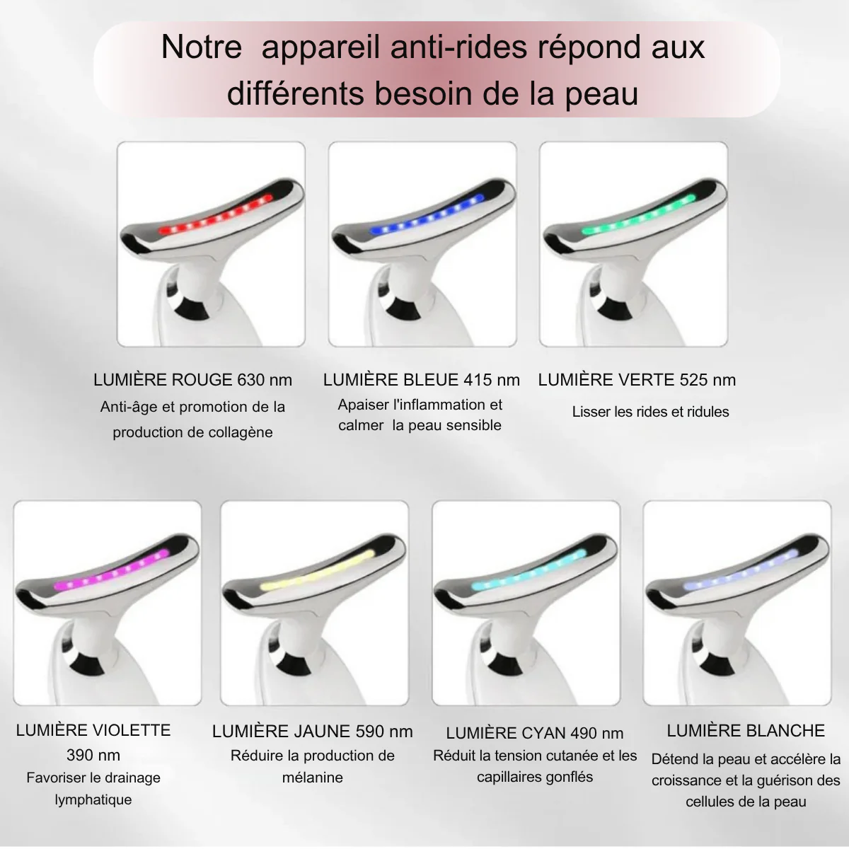 🔴 LED Thérapie (7 couleurs) : pour lisser rides, taches, acné