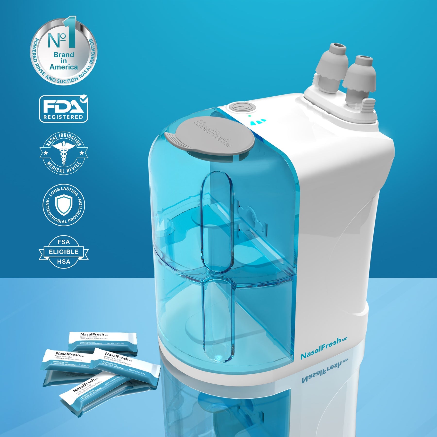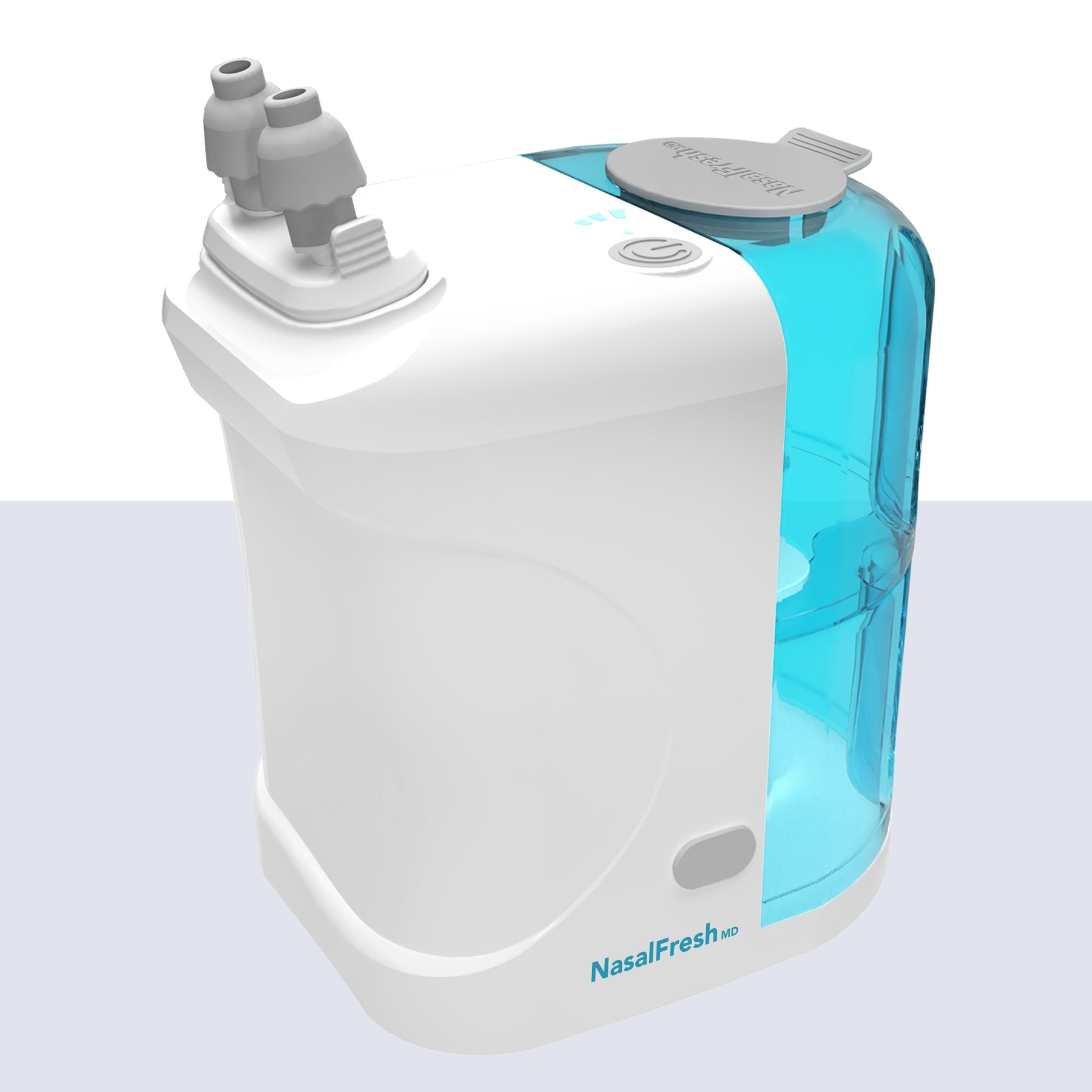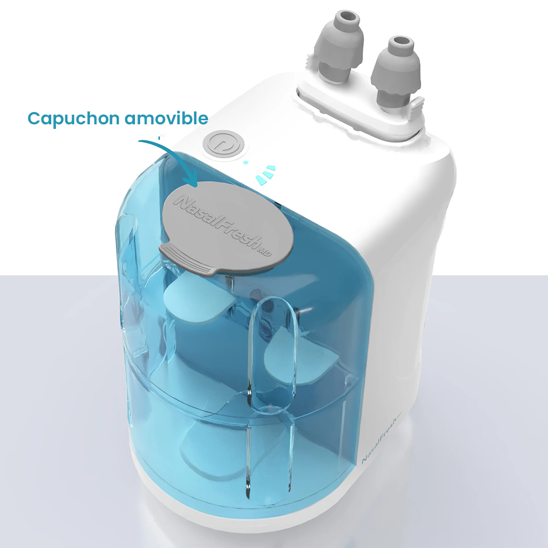 NasalFresh MD est un appareil innovant qui nettoie ton nez en profondeur grâce à un double système de rinçage et d’aspiration motorisés.
