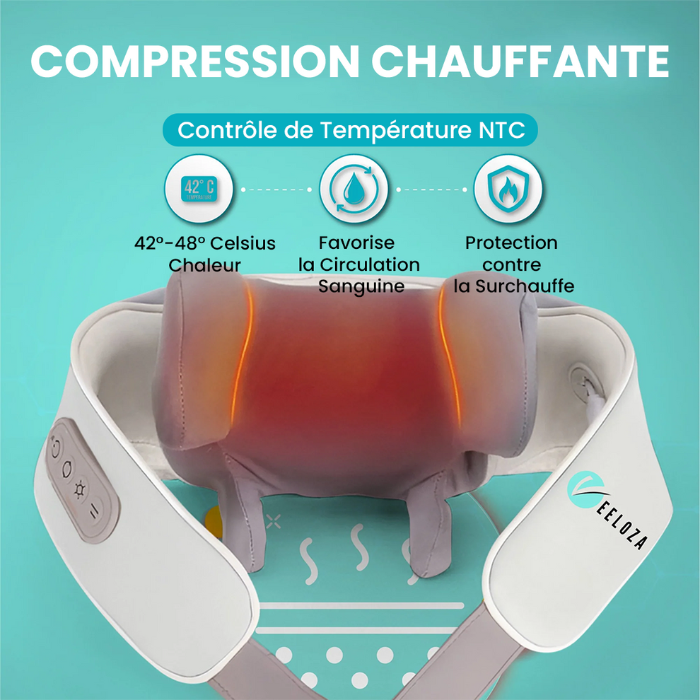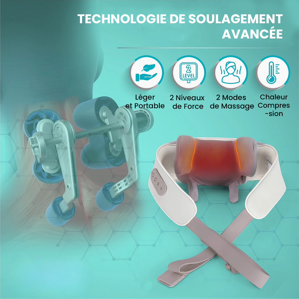 Soulagez instantanément les douleurs au cou, aux épaules et au dos grâce à un massage profond et une chaleur apaisante. Compact, élégant et sans fil — pour un bien-être partout, à tout moment.