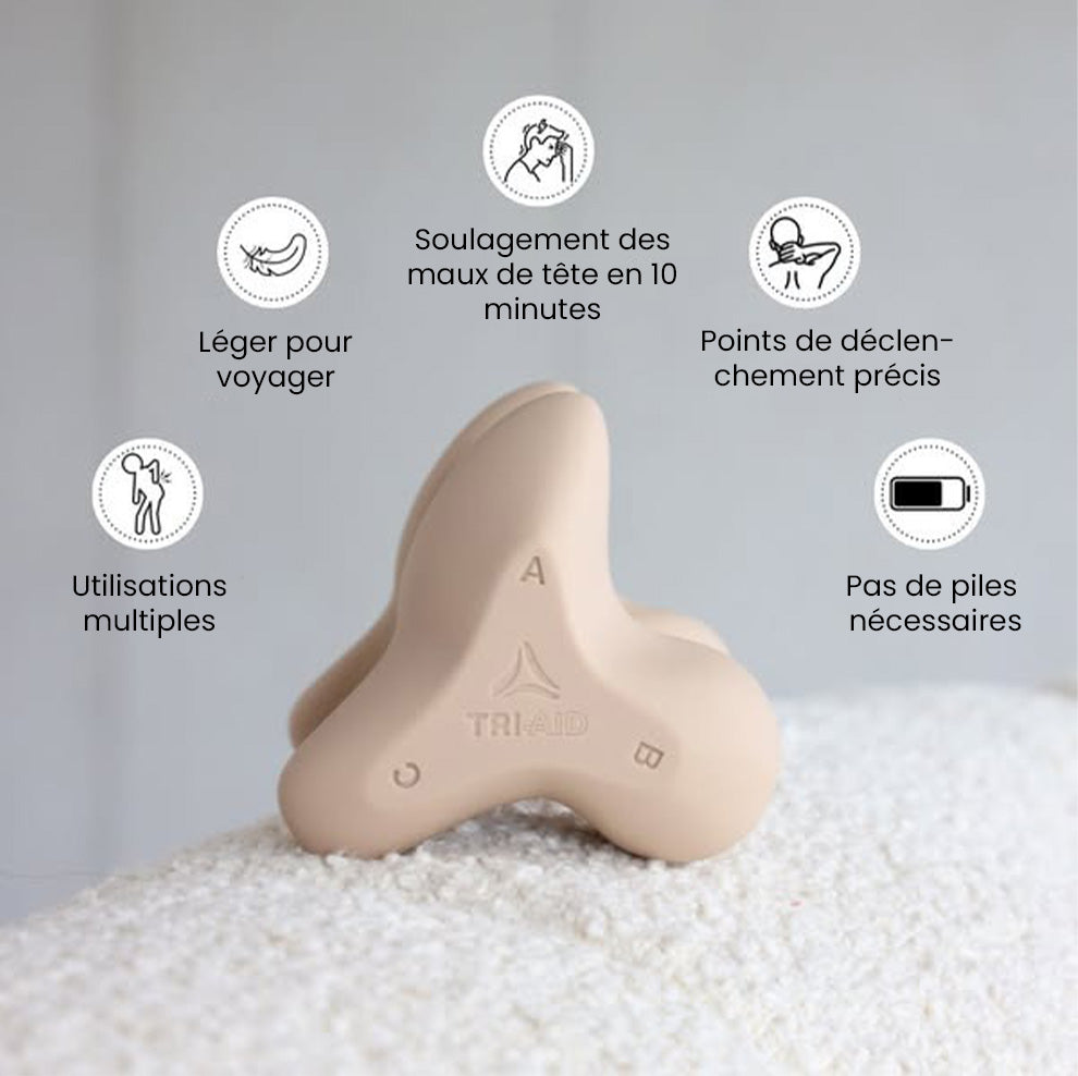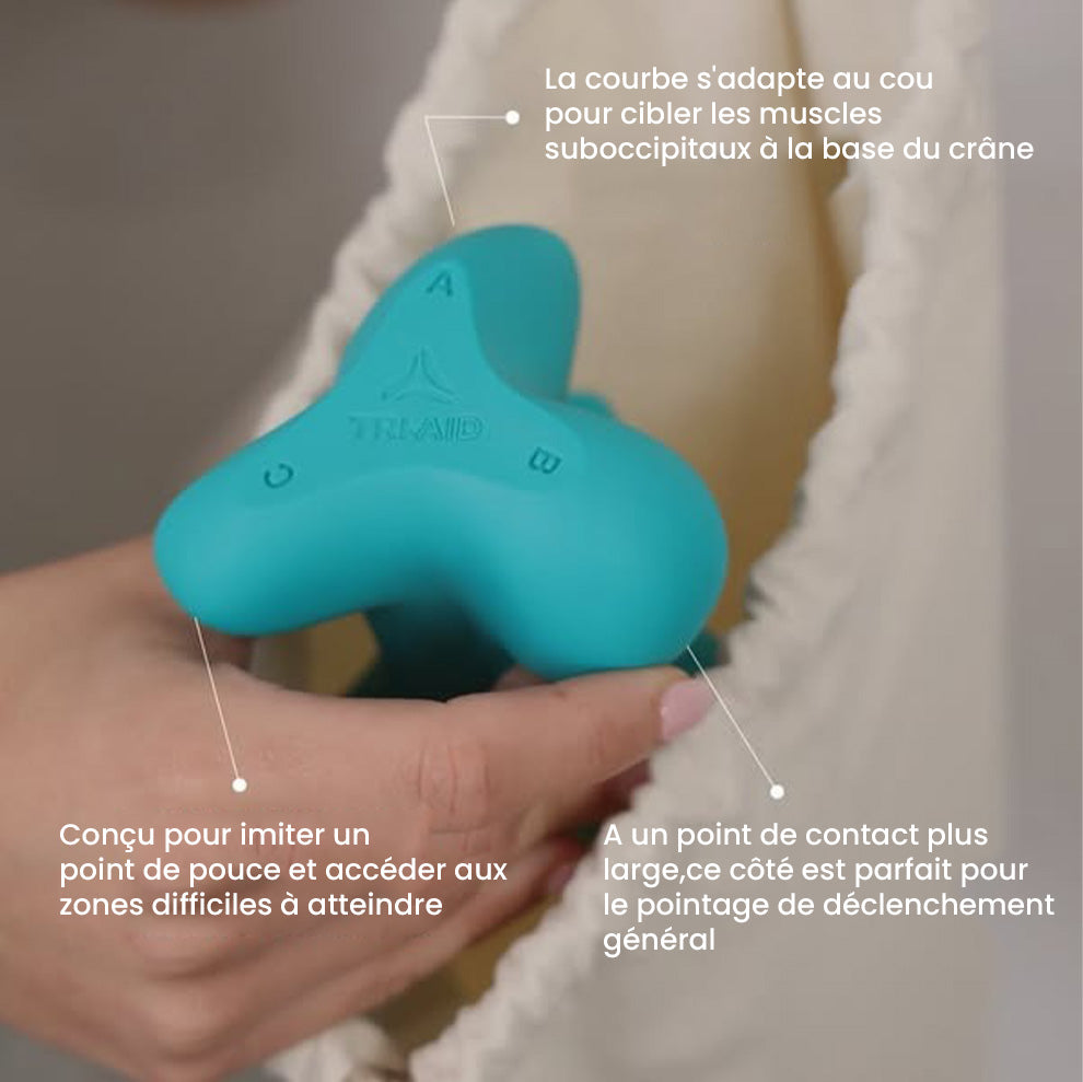 Le Tri-Aid™ est un appareil de massage manuel qui cible les points de tension profonds (ce qu’on appelle les "trigger points").